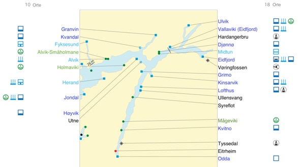 Symbole charakterisieren die Orte hinsichtlich ihrer Ausstattung.